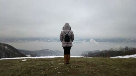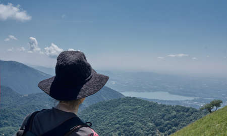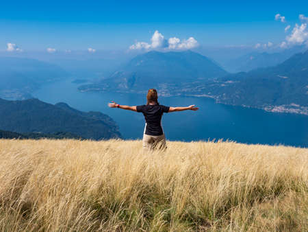 woman or girl looking the Landscape of Lake Como from an alpine trail