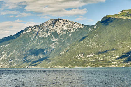 Lake Garda in Italy, on background of mountains