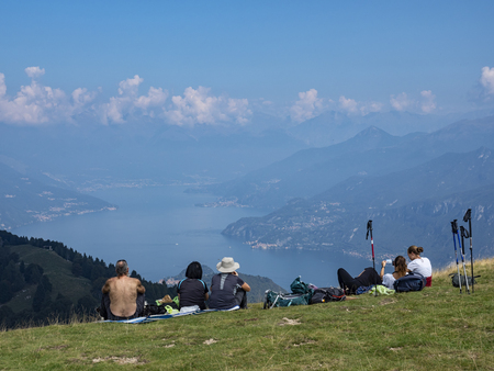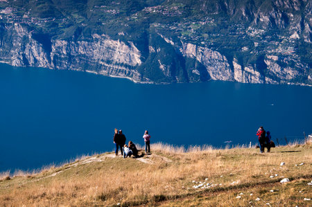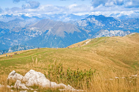 Tourists walking on the hill of Monte Baldo, Italy