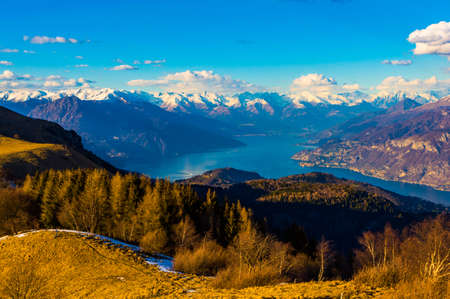 Panorama of Lake Como, with Dervio and the northern part of Lake Como.