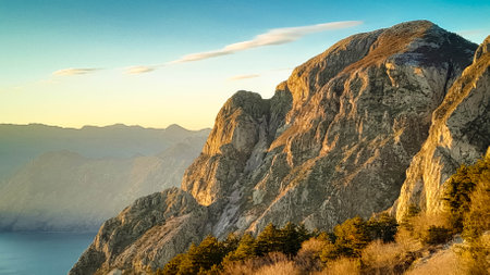 Panorama of Mount Baldo viewed from the west. Italian Alps. Europe.