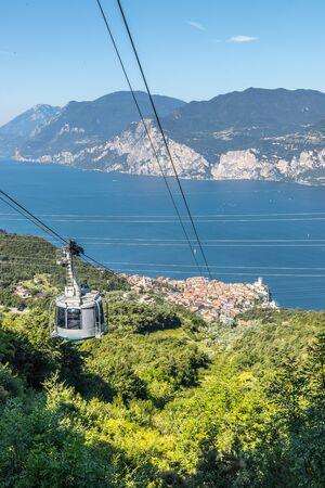 cableway from Garda Lake to Monte Baldo mountains in summer day, Italy