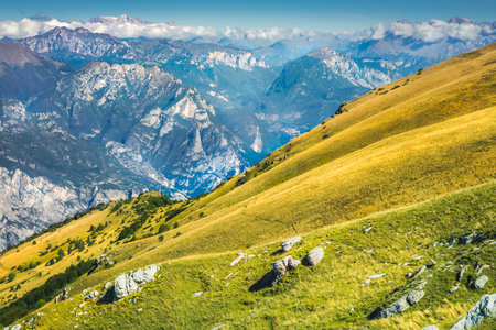 Italian Dolomites alps from above idyllic Monte Baldo, Malcesine, Italy