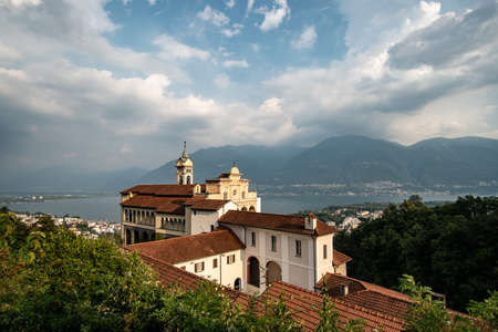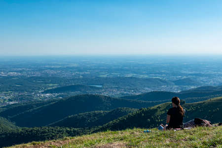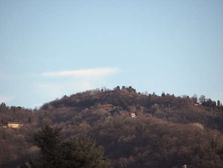 Sacro Monte (VA), Italy - June 01, 2020: Landscape view at pilgrimage village of Santa Maria del Monte on Sacro Monte di Varese, UNESCO World Cultural Heritage Site, Santa Maria del Monte, Varese, Lombardy, Italy