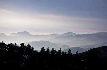 Morning over the wooded slopes of the Cabeco D'or mountains .Spain.Horizontal view.