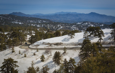 Olymbos, Cyprus - Oct 10. 2019. View from Mount Olympus , the highest peak of the island of Cyprus. Troodos mountains