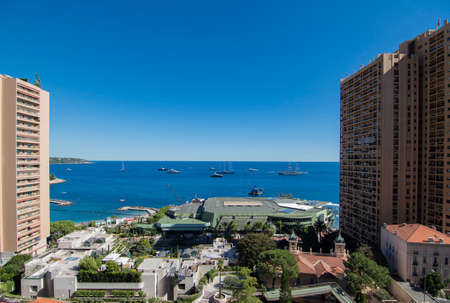 MONACO - APRIL 8 : Cityscape of skyscraper buildings and coastline in Monaco, Monaco, on April 8, 2017. Monaco is the second smallest and the most densely populated country in the world.