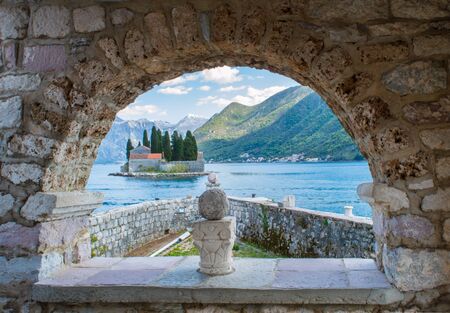 Perast island in Kotor Bay Montenegro. Our Lady of the Rocks island in Kotor Bay