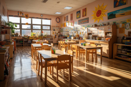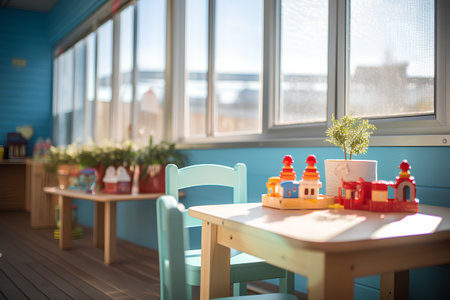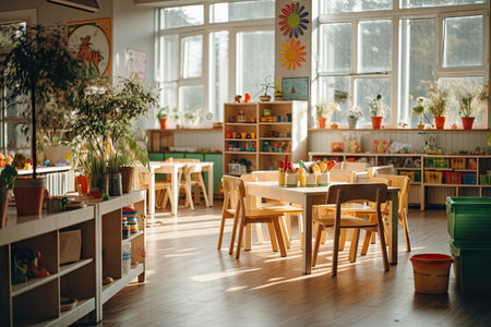 Bright and inviting preschool classroom featuring colorful educational toys, tables, and chairs designed for enhancing early childhood learning experiences.