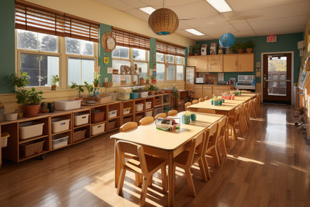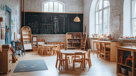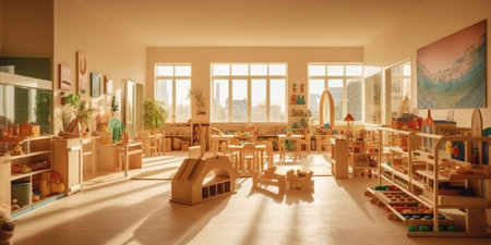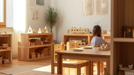 Montessori preschool embraces eco-consciousness through wooden materials, fostering curiosity and creativity. AI Generative AI