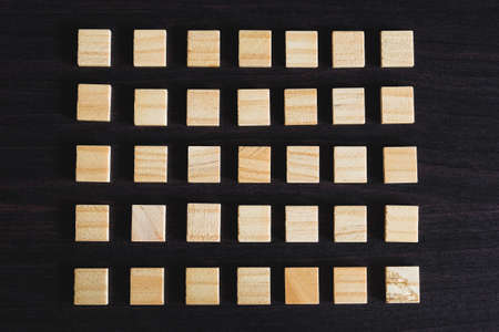 Cube Wood Square with Copy Space Isolated on a black wood table Background.
