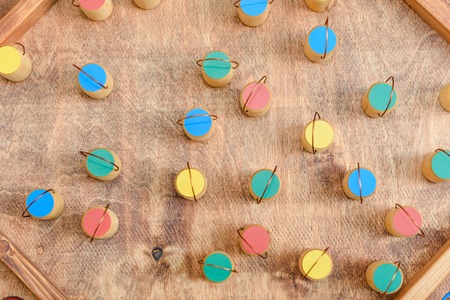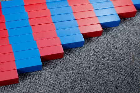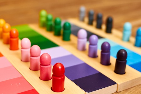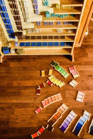 Montessori color tablets on wooden floor background