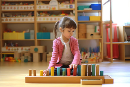 Busy girl in her school class with montessori material. Ai generated.