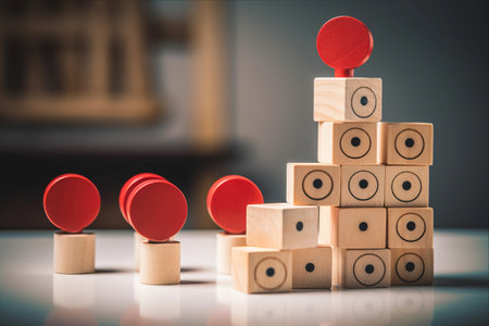 Close up image of colored wooden blocks as a graph