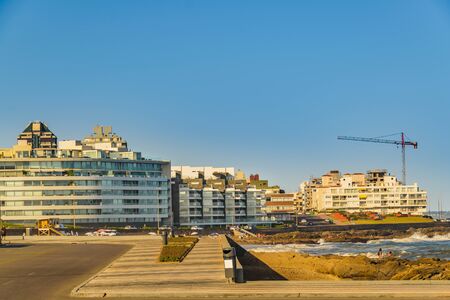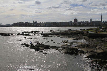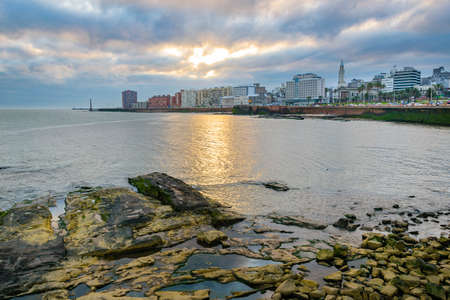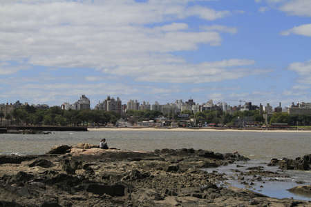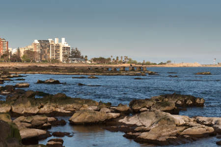 Rocky coastal cityscape scene at montevideo city, uruguay