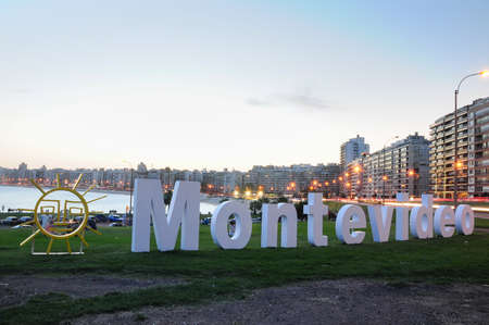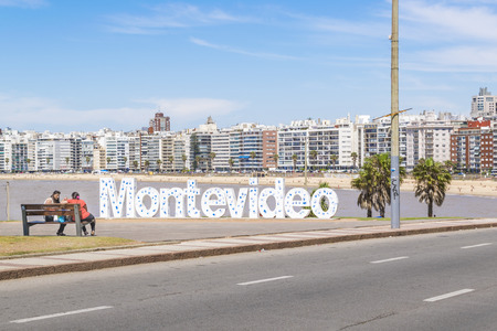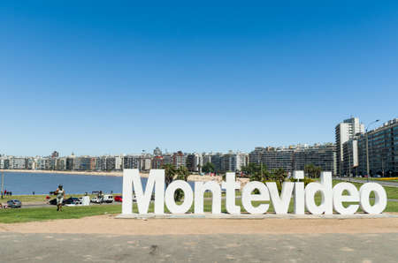 Montevideo, Uruguay - March 6 2016: Construction of the word Montevideo near to the beach.