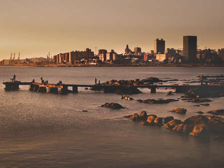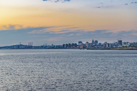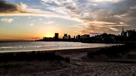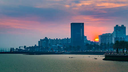 Cityscape coastal sunset scene at Montevideo city, Uruguay
