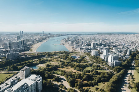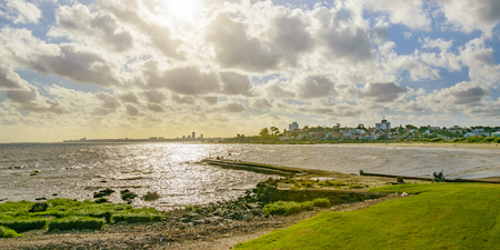 Afternoon landscape coastal scene at waterfront park, montevideo city, uruguay