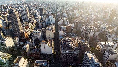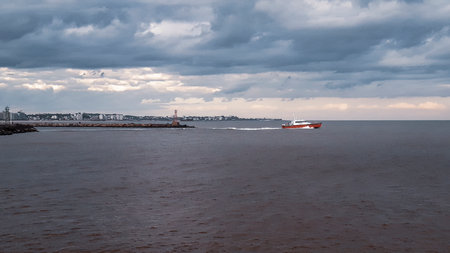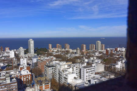 Montevideo, Uruguay, sep 2022. Typical seo or ocean urban landscape of the old city. high quality photo