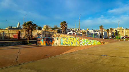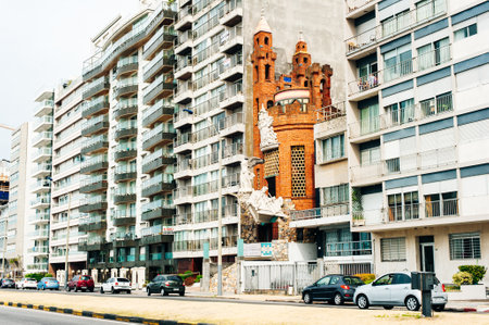 MONTEVIDEO, URUGUAY, OCTOBER - 2020 - Urban coastal scene at ciudad vieja district, montevideo city, uruguay