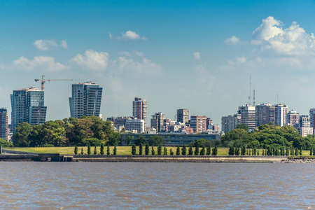 Waterfront modern apartment buildings and park at buceo neighboorhod, Montevideo, Uruguay