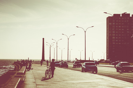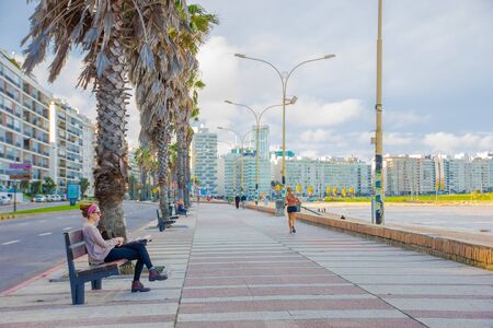 MONTEVIDEO, URUGUAY, APRIL - 2016 - Urban scene at the coast of Montevideo city, Uruguay