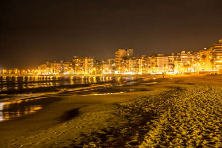 Night urban coastal sunset silhouette scene, montevideo city, uruguay
