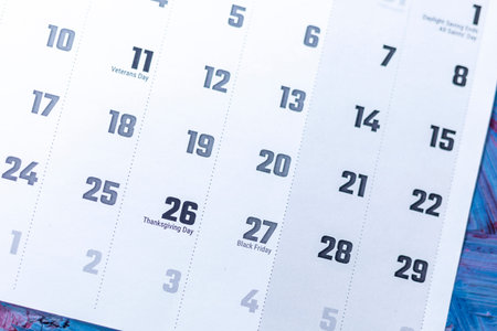 Close up calendar page dates abstract blurred background business planning appointment meeting concept