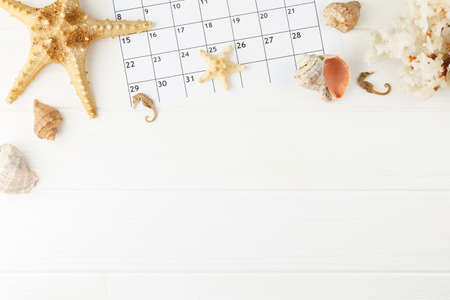 close up of calendar on the white and blue table, planning for business meeting or travel planning concept