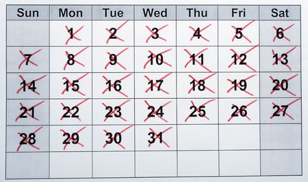 Close-up shot of monthly calendar days. Simple calendar
