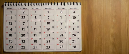 Close up the calendar on the brown table in planning ideas.