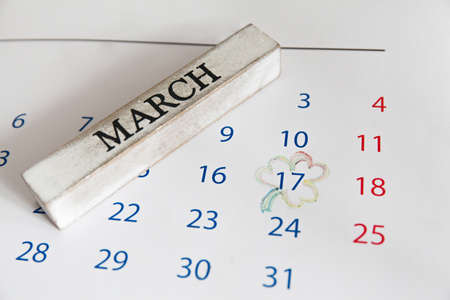 View from above to monthly March calendar