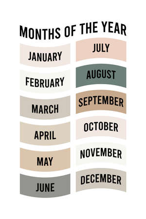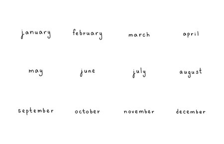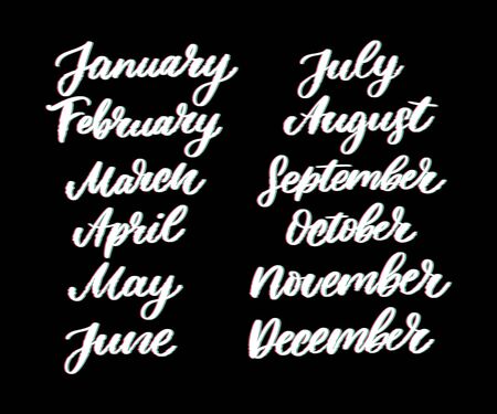 Handwritten names of months: December, January, February, March, April, May, June, July, August September October November Calligraphy words for calendars and organizers