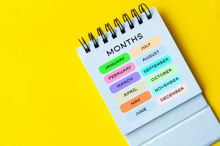 Yellow Sticky Notes Lined up on a White Background with the Months of the Year Written on them