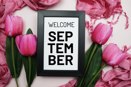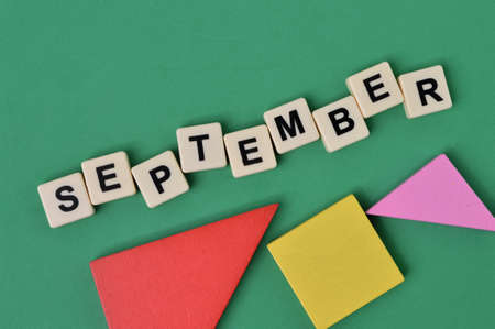 Top view of wooden blocks and square letters with text SEPTEMBER.