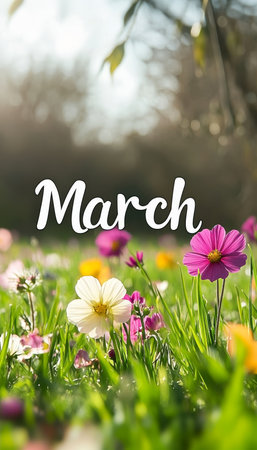 Hello, March A Vibrant Wildflower Meadow in Full Bloom, Celebrating the Beauty of Spring