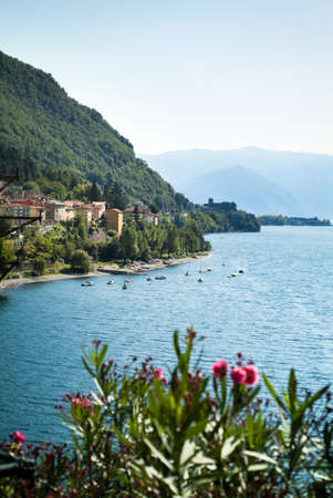 View from Cannobio over Lake Maggiore. Cannobio is a town in Piedmont in northern Italy
