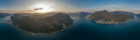 Aerial panorama of Marone town on Lake Iseo in Lombardy, Italy