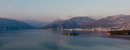 Panorama of Isola Superiore Pescatori island summer sunset