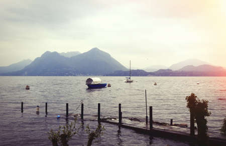 Lugano, Switzerland. View at lake of Lugano at sunset