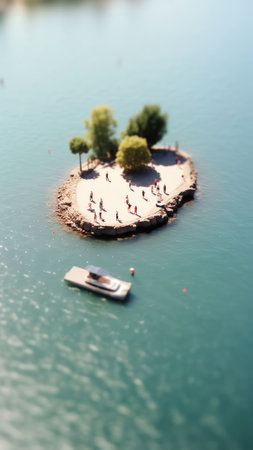 aerial shot of a lone island in the middle of water aerial shot.