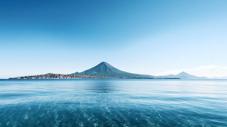 Generative AI : Aerial view of Mount Vesuvius from Marechiaro along the Mediterranean Sea coastline Naples Campania Italy