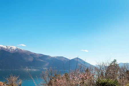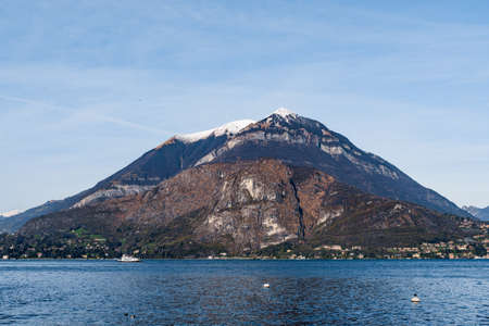 Snow on the mountain peaks near Lake Como. Italy