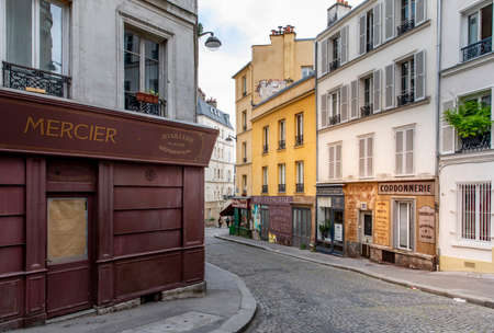 Paris, France - May 12, 2020: Typical buildings and house in Montmartre hill in Paris