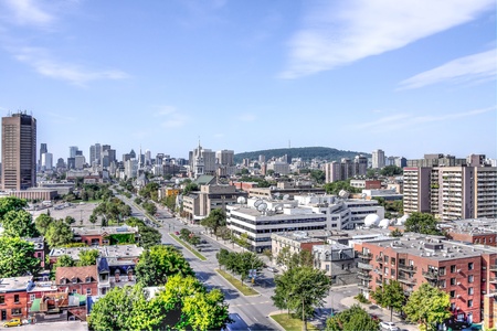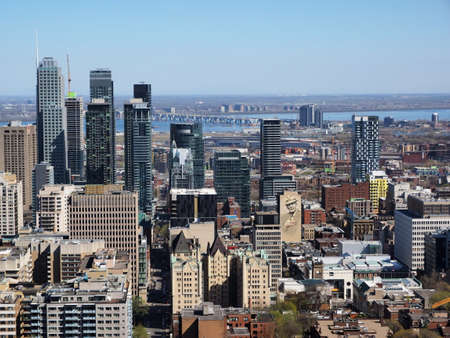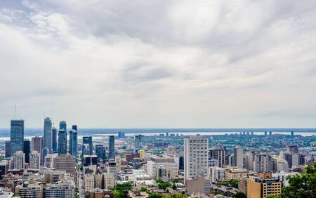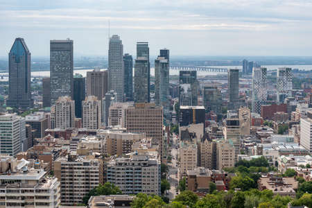 MONTREAL, CANADA - JUNE 16, 2018: Part of the dense downtown and surrounding areas can be seen looking south-east from Mount Royal.
