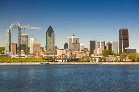 Downtown city skyline showing St. Lawrence River, Montreal, Quebec, Canada