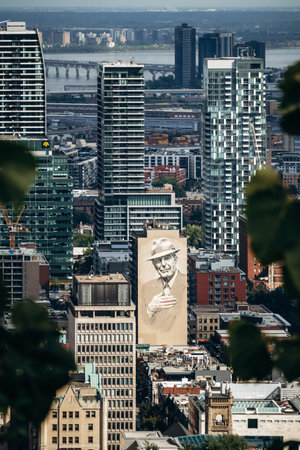 Montreal, Canada - August 15, 2025: Large mural on a building facade seen from Kondiaronk Belvedere