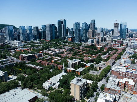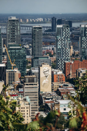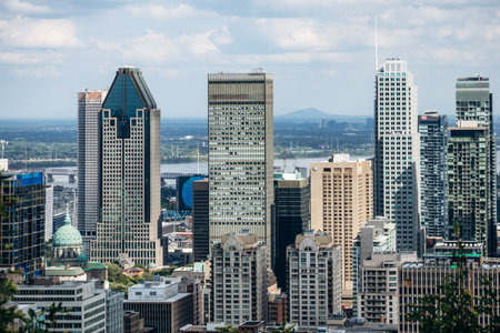 Montreal, Canada - August 15, 2025: City skyline with office towers and residential buildings seen from Kondiaronk Belvedere