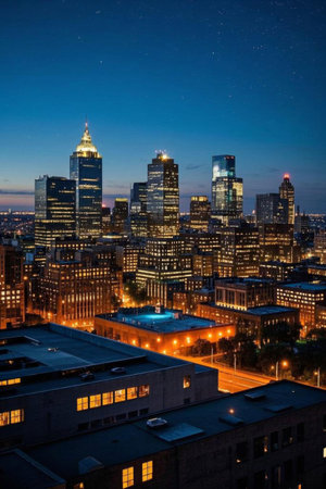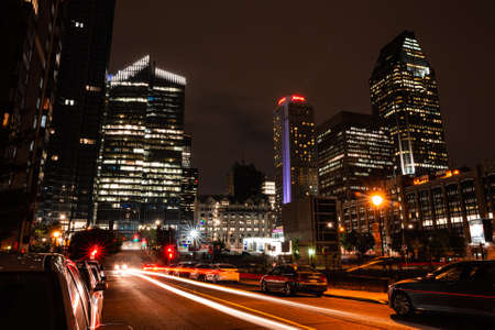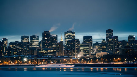Montreal skyline at dusk at night, Canada - dec, 2019.