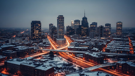 Montreal skyscrapers in winter. Shooting Location: montreal, canada